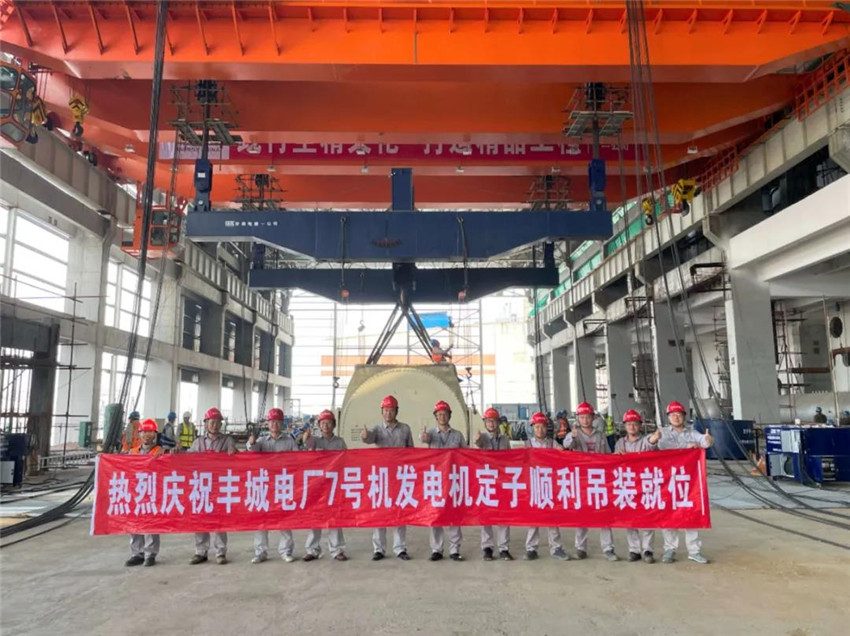 7号发电机定子吊装就位工作顺利完成,为丰电三期扩建工程如期顺利投产奠定了坚实的基础。