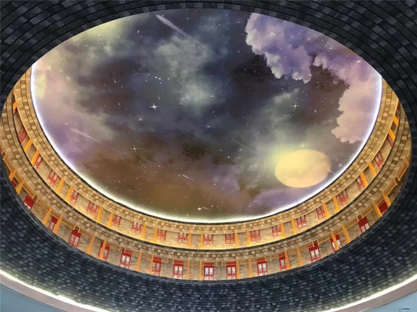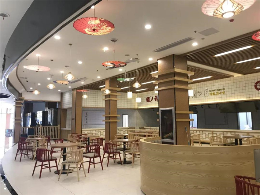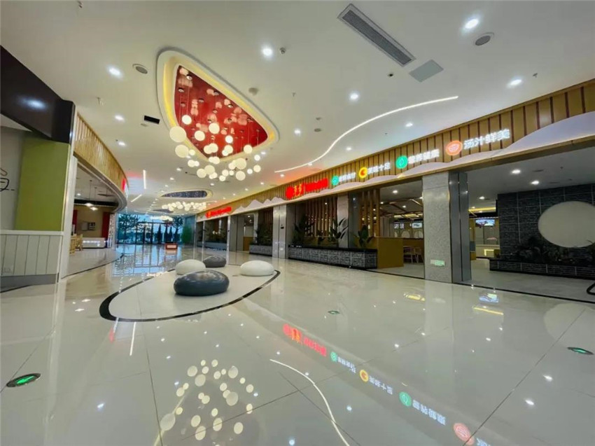 来到商业综合体,便能浓烈感受到一波现代与复古杂糅的商业场景。首先是能清晰地看见商场内部轮廓。低头间,灰白相间的地砖、挥洒自如的曲线、优雅流畅的弧度,都无不营造着现代艺术上的视觉冲击。抬头望,那璀璨星空映照下的朱门黛瓦,更是在这新与旧的碰撞中尽显质感,令人流连忘返。