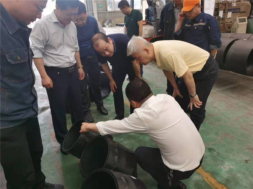在安源管道,张惠良、杨建平一行与安源管道公司班子,江西省高技能人才、“能工巧匠”陈建匀等技术人员进行了座谈交流,详细了解安源管道公司当前生产经营、科技创新等工作情况,询问企业生产经营中遇到的困难。在安源管道公司生产车间现场,张惠良、杨建平一行仔细了解企业产品生产工艺、安全环保等情况。