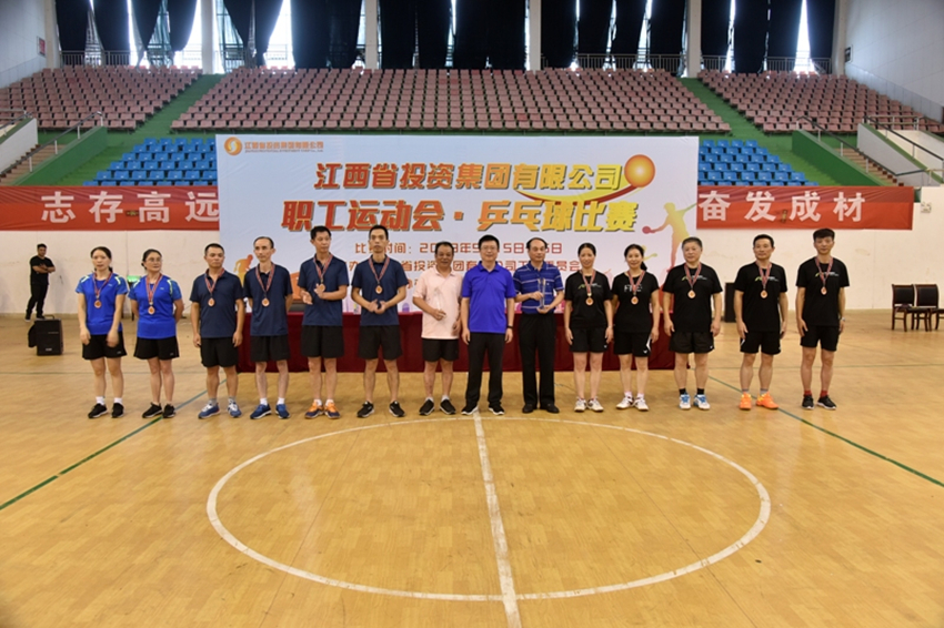 为进一步丰富职工体育文化生活,展示集团广大职工奋勇拼搏、昂扬向上的精神风貌,集团于2018年9月15至16日在南昌举办职工乒乓球比赛。来自集团14支代表队、82名运动员参加比赛,共同唱响“健康生活、快乐工作”的主旋律。集团公司党委书记、董事长揭小健,副总经理周健勇,总经理助理李天晓参加闭幕式,并为获奖代表队颁奖。闭幕式由集团总经理助理胡若兰主持。