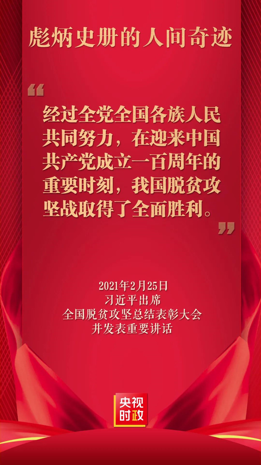 全国脱贫攻坚总结表彰大会2月25日上午在北京人民大会堂隆重举行。中共中央总书记、国家主席、中央军委主席习近平向全国脱贫攻坚楷模荣誉称号获得者颁奖并发表重要讲话。习近平庄严宣告,经过全党全国各族人民共同努力,在迎来中国共产党成立一百周年的重要时刻,我国脱贫攻坚战取得了全面胜利。会上,习近平总书记深刻阐述伟大脱贫攻坚精神。大会还对全国脱贫攻坚先进个人、先进集体进行表彰。此次获得全国脱贫攻坚楷模荣誉称号的共有10名个人和10个集体,江西省瑞金市叶坪乡人民政府荣获全国脱贫攻坚楷模荣誉称号。获得全国脱贫攻坚先进个人的共有1982人,江西省54人荣获全国脱贫攻坚先进个人。获得全国脱贫攻坚先进集体的共有1501个,江西省40个集体荣获全国脱贫攻坚先进集体。