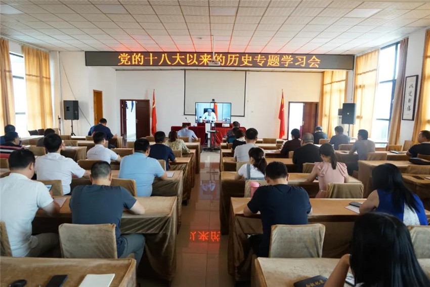 6月24日下午,集团公司召开党委理论学习中心组(扩大)学习会,专题学习党的十八大以来的历史,会议邀请省委党校党史党建教研部副主任、教授黄德锋作学习辅导,集团党委书记、董事长揭小健主持会议。学习会以现场会议+视频连线+手机直播的方式组织学习,集团在家高管、各职能部门负责人在主会场参加学习,各所属企业高管、中层干部、党员代表共1600余人通过视频或钉钉参加学习。