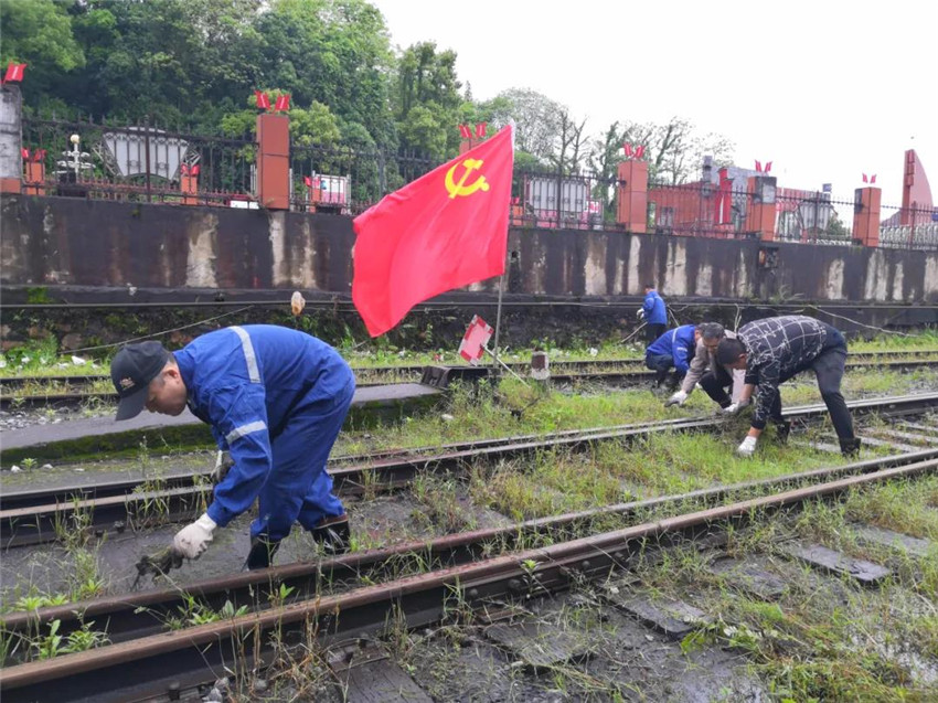近日,安源煤矿矿区到处党旗飘扬,人声鼎沸,从井口车场到材料料场,从铁路道口到储煤坪,聚集着一群身穿工作服,脚穿雨鞋的人,他们两人一组,四人一队,抬的抬,铲的铲,装的装,还有的在清理铁道两旁和沟里的杂草杂物,一派热火朝天的工作场景。原来这是该矿组织上百名党员干部,以义务劳动的形式开展“坚守红色使命,学史践诺力行”百名党员同过党日实践活动。