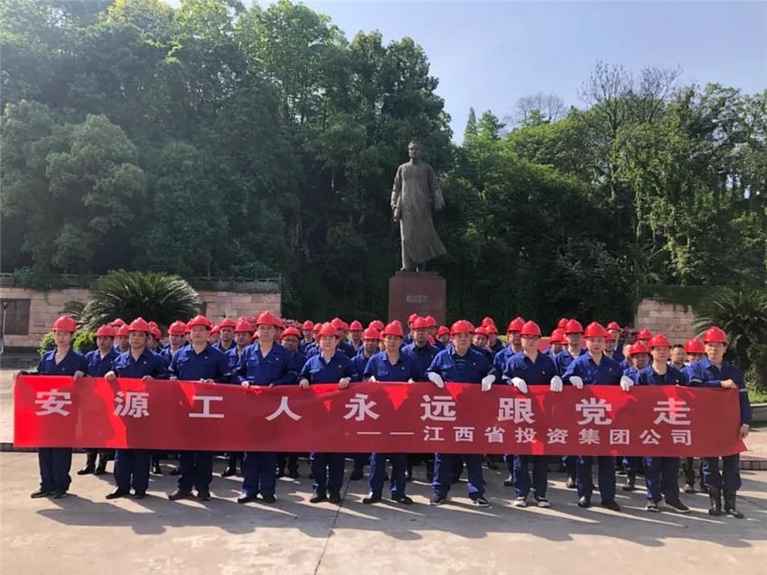 党日活动开始前,全体党员、干部在毛主席铜像广场、总平巷井口同唱《永远跟党走》,用歌声唱响安源好声音,讴歌党的丰功伟绩,抒发安源工人永远跟党走,爱党、爱国的情怀。